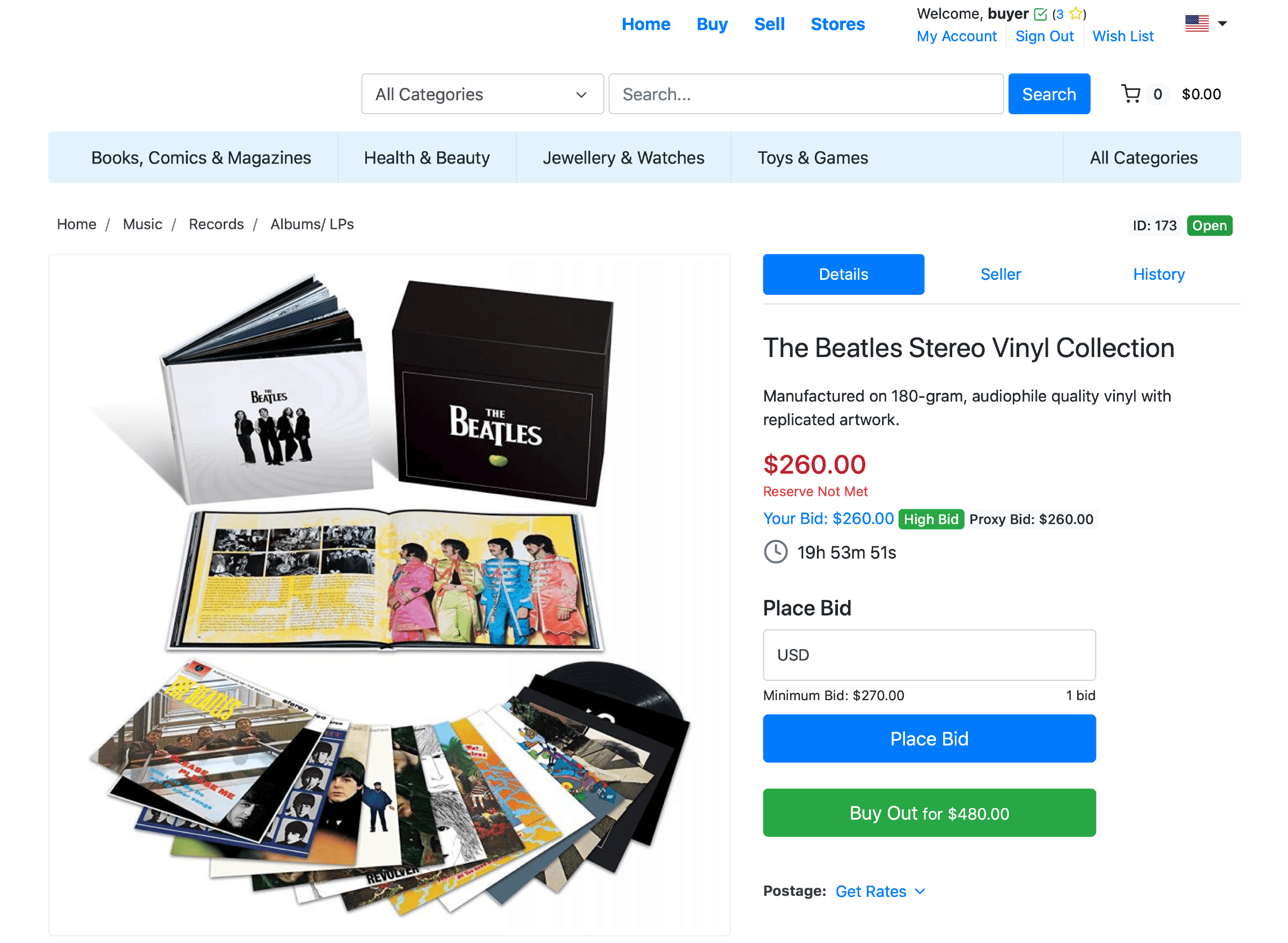 Create an auction, enable Buy Out Feature and set a Buy Out Price: